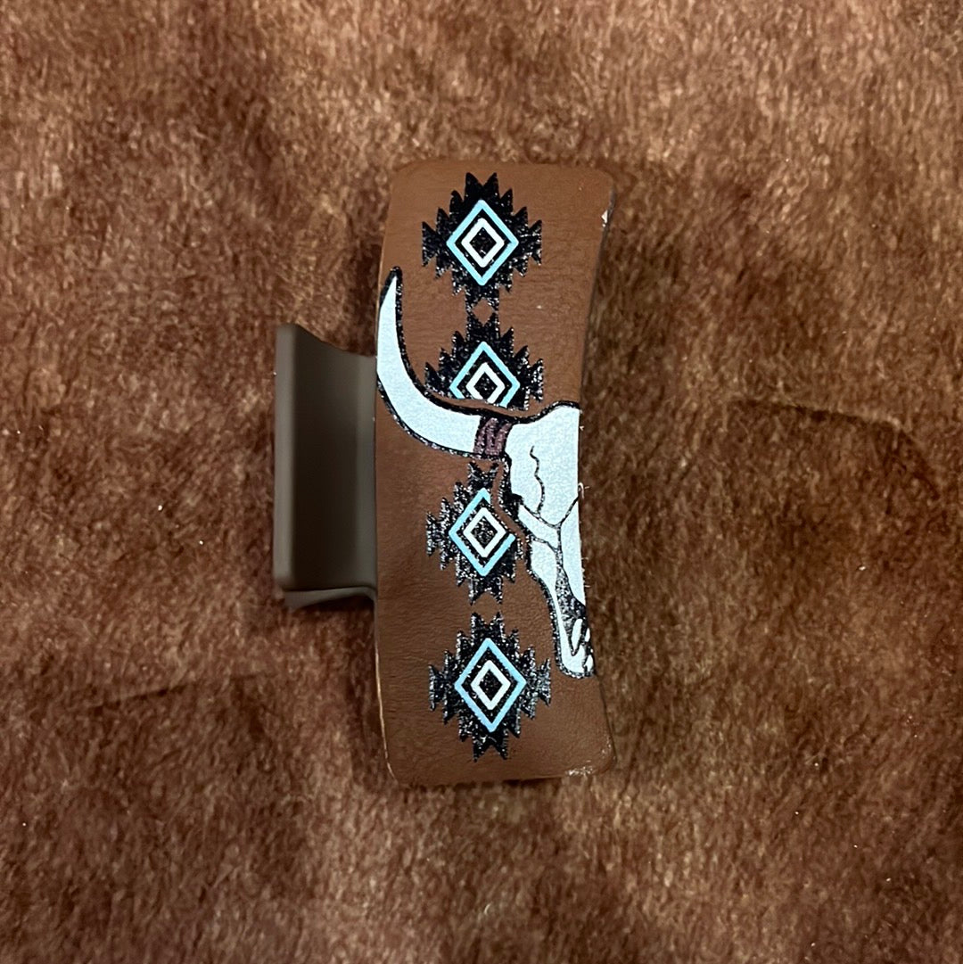 Aztec and Bull Skull Claw Clip